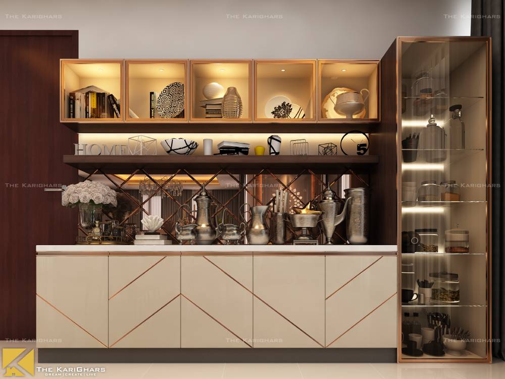 A crockery unit is an ornamental furniture unit that adores the kitchen area or dining area. A crockery cabinet completes the decor of your kitchen area. Extending the space of the dining room or allocating a specific space is a part of the crockery unit design and it should be done effectively for functional and elegant space usage.